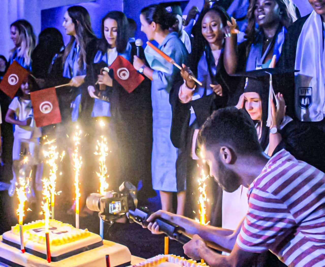 وتم خلال الحفل تسليم شهائد تخرّج لعدد من الطلبة كما تم استعراض تجربة الجامعة الرائدة في مجال التعليم العالي الخاص على مدى 20 سنة وذلك من خلال تقديم أرقام ومؤشرات في علاقة بعدد الطلبة المتخرجين في مختلف الاختصاصات و الطلبة الذين تمكّنوا من الدخول والانخراط في سوق الشغل العالمي.
