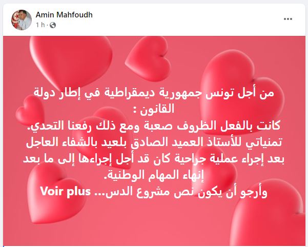 وقال محفوظ إن الظروف كانت صعبة لكنهم مع ذلك رفعوا التحدي، متمنيا أن "يكون نص مشروع الدستور الذي سيعرض على استفتاء الشعب في مستوى هذه التضحيات".