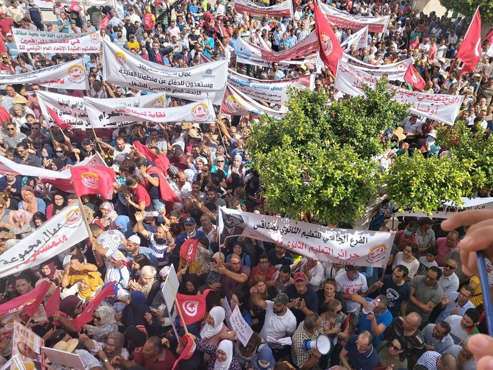 وضد مشروع التخفيض في اجور العمال والموظفين والمتقاعدين،ودفاعا عن الاتحاد في وجه الهجمة الشرسة التي يقودها اعداء العمل النقابي ودفاعا على أعوان الصحة المعتقلين حسب ما جاء في بيان الهيئة الادارية للاتحاد العام التونسي للشغل المنعقدة امس في صفاقس.