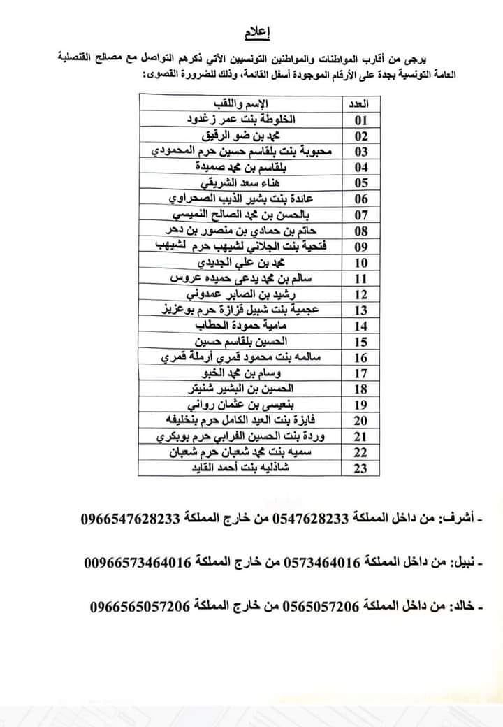 ووضعت القنصلية أرقاما على صفحتها بفيسبوك للاتصال بها من داخل المملكة السعودية وخارجها.