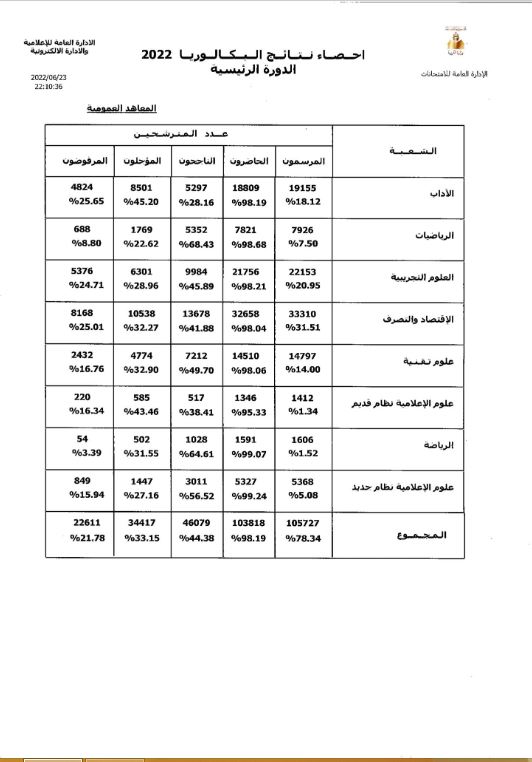 نتائج الدورة الرئيسية لامتحان البكالوريا دورة 2022​​​​​​