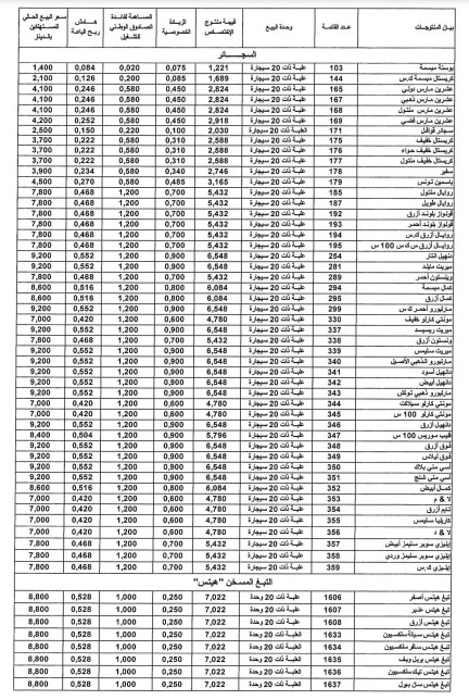 التسعيرة الجديدة للسجائرالتسعيرة الجديدة لبيع مادة المعسل التسعيرة الجديدة لبيع المعسل