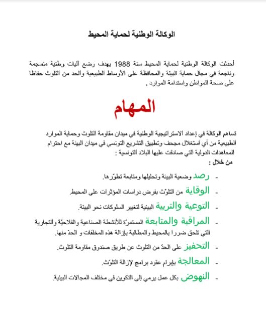 لمحة حول الوكالة الوطنية لحماية المحيط