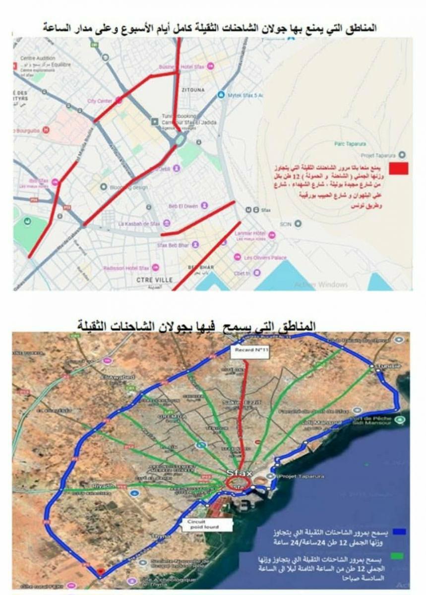 قررت بلديات صفاقس وساقية الزيت والعين وقرمدة والحاجب والشيحية وساقية الدائر والعوابد الخزانات، منع جولان الشاحنات الثقيلة بكل من طريق تونس وشارع الحبيب بورقيبة وشارع مجيدة بوليلة وشارع الشهداء، إثر تسجيل عدد من الحوادث القاتلة داخل المدينة.