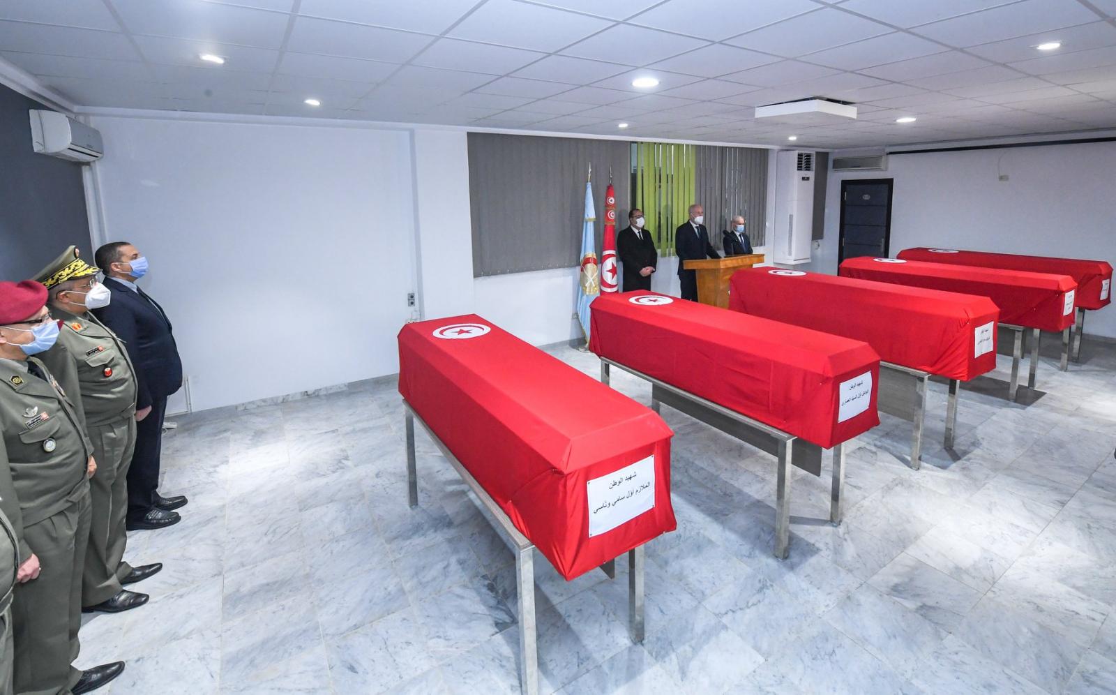 وفي كلمة تأبينية استحضر رئيس الجمهورية خصال أبطال تونس ونوه بشجاعتهم واستبسالهم دفاعا عن الوطن وعن أمن وسلامة التونسيات والتونسيين من الأعداء المتربصين ببلادنا.
