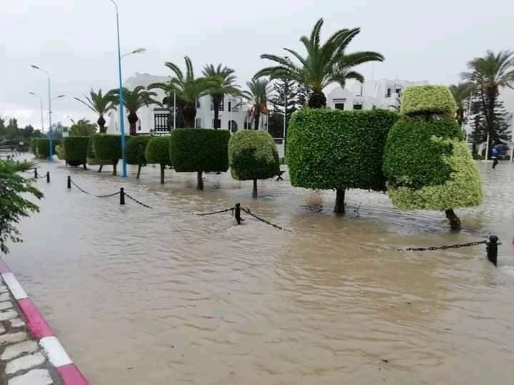 مدينة حمام سوسة من أكثر المناطق التي تضررت اليوم من السيول وإرتفاع منسوب مياه الأمطار.