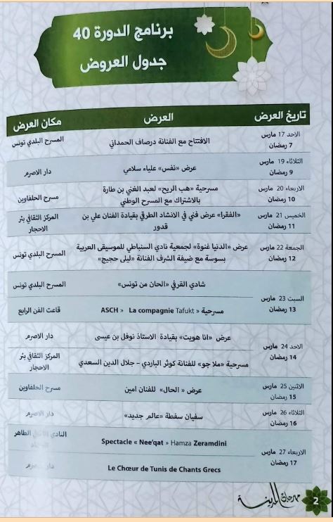 تنطلق يوم الأحد 17 مارس الجاري، فعاليات الدورة 40 لمهرجان المدينة بتونس لتتواصل إلى غاية 6 أفريل المقبل.