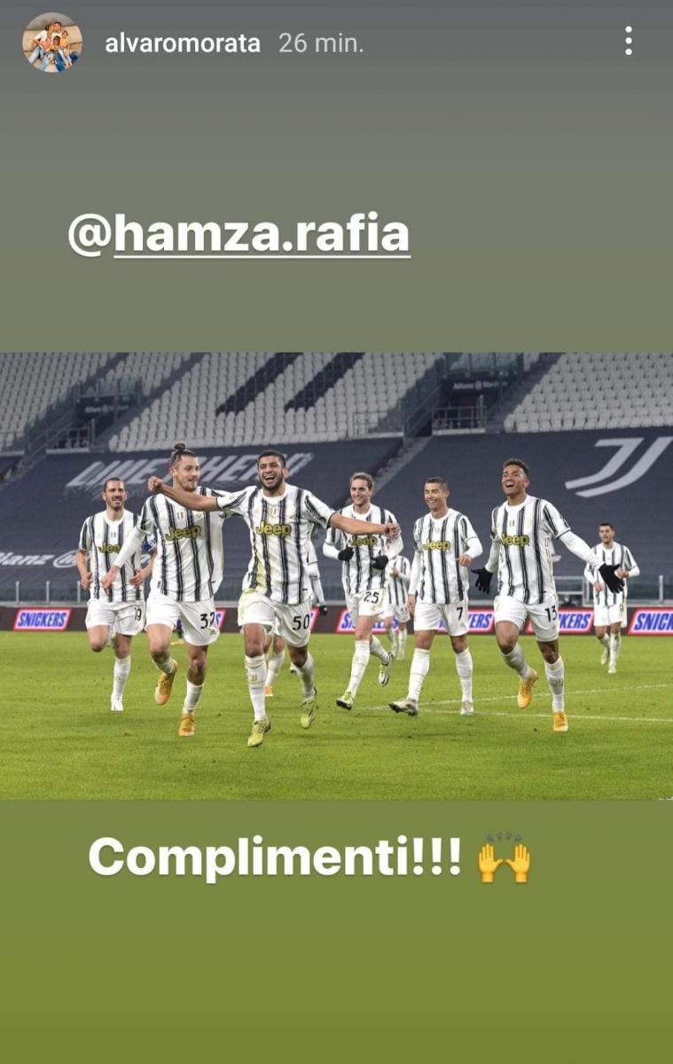 الدون كريستيانو رونالدو نشر صورة احتفاله مع رفيعة بالهدف المسجل في الحصة الإضافية على غرار الفارو موراتا مهاجم جوفنتوس الذي نشر صورة إحتفال حمزة رفيعة مرفقة بلفظ "احتراماتي!".