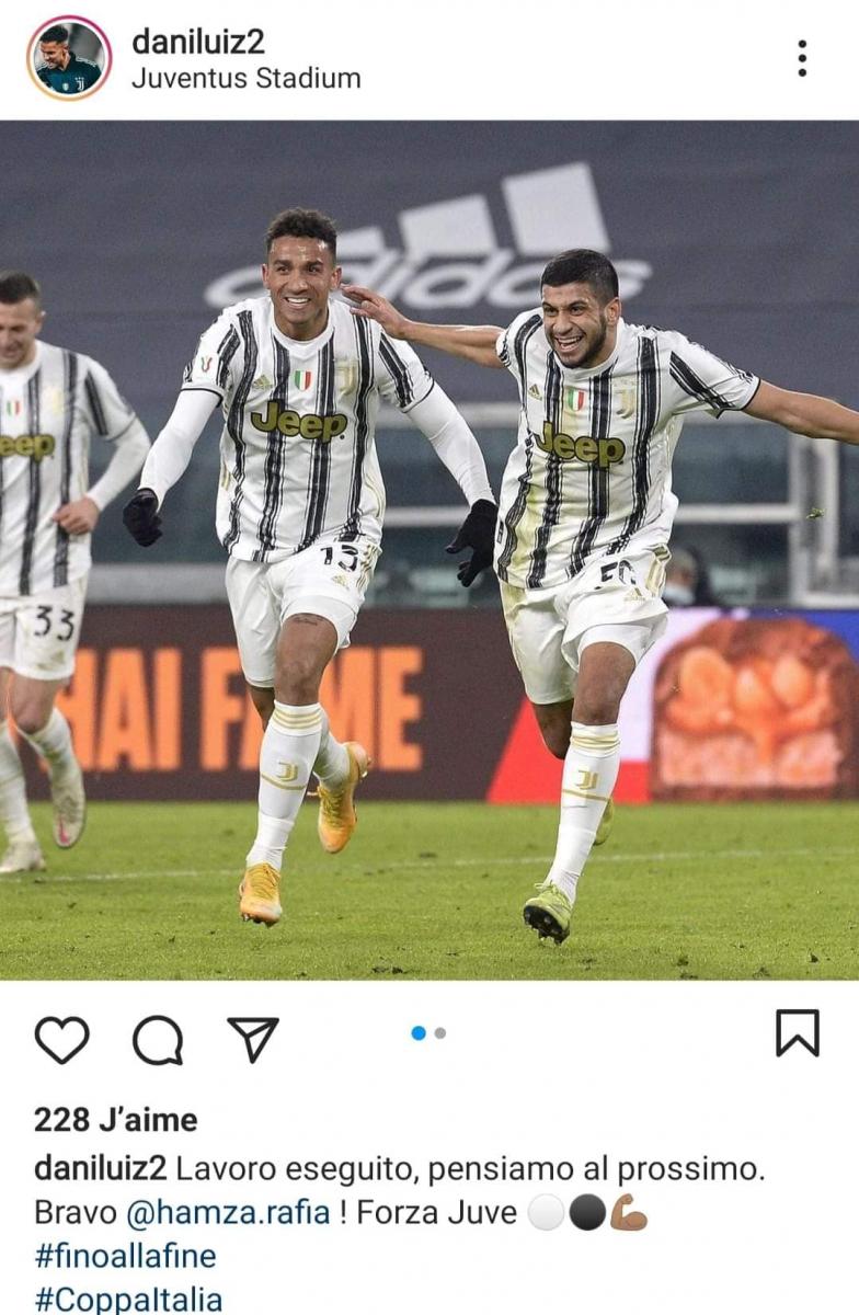 وختمت الصفحة الرسمية لنادي جوفنتوس الإحتفالية بنشر صورة إحتفال جماعية للاعبين مرفقة بإهداء للتونسيين " نسر قرطاج يحلق في سماء تورينو ويسجل هدف بنكهة الهريسة التونسية".
