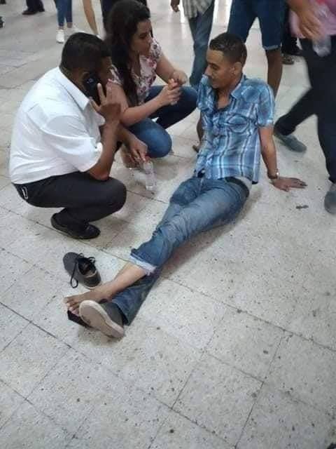 الجزء الذي سقط تسبب في اصابات خفيفة لمسافرين إثنين على مستوى الرأس قبل تدخل الجهة المعنية لإسعافه و رفع الركام وتنظيف المكان ، حسب ما أفاد به شهود عيان.