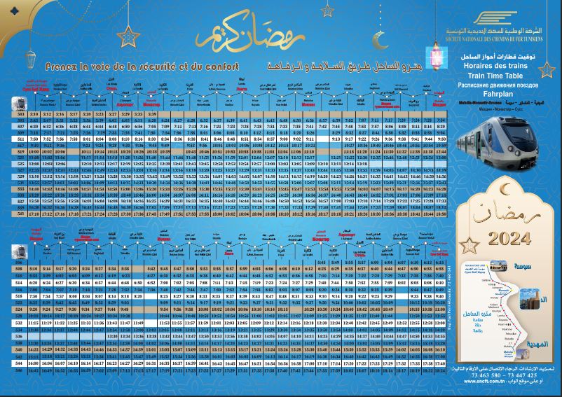 أعلنت الشركة الوطنية للسكك الحديدية التونسية اليوم الثلاثاء 12 مارس، عن أوقات سفرات قطارات أحواز الساحل خلال شهر رمضان 2024، سوسة باب جديد - المهديّة.