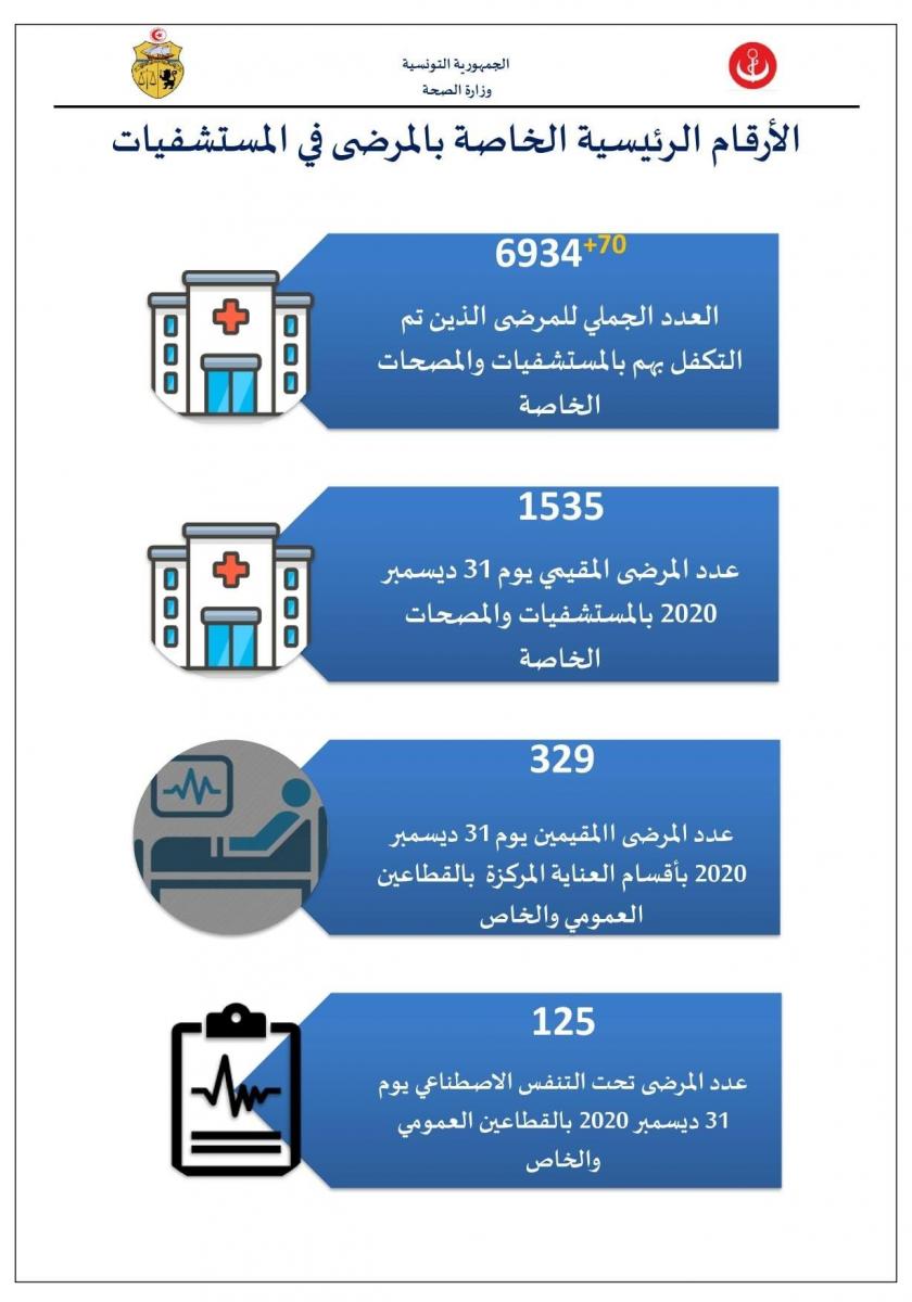 نشرت وزارة الصحة ، اليوم الجمعة غرة ديسمبر 2020 ، تحييناً لعدد الإصابات بفيروس كورونا في كامل تراب الجمهورية.