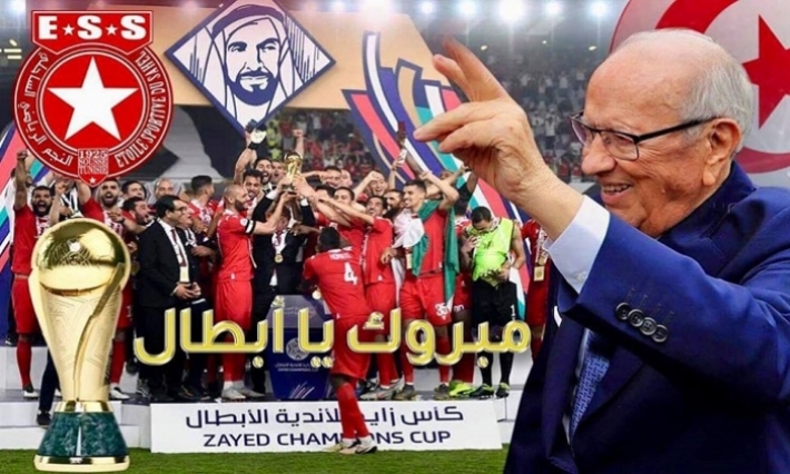 وقدّم رئيس الدولة بالمناسبة تهانيه لكل لاعبي فريق النجم الرياضي الساحلي وطاقمه الفنّي والاداري وجماهيره العريضة على تتويجهم العربي، معربا عن بالغ تقديره لما يبذلونه من مجهودات لاعلاء راية تونس في المحافل الرياضية العربية والدوليّة، حاثا ايّاهم على مواصلة التألق لتظلّ الرياضة التونسية متألقة على الدوام.