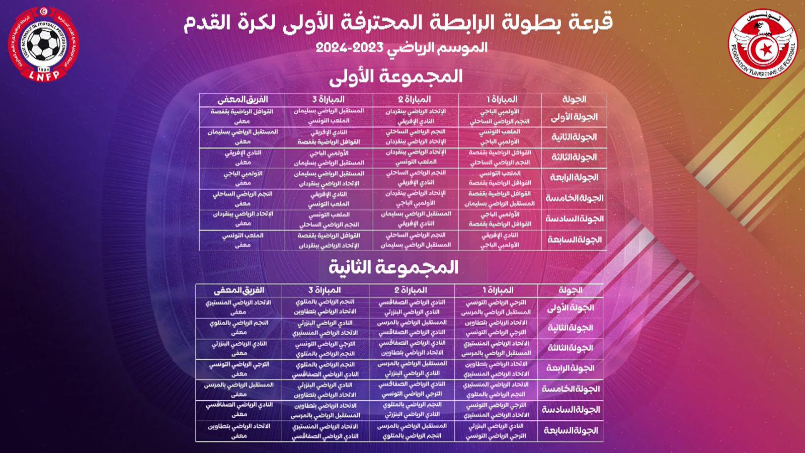 جرى بمقر الجامعة التونسية لكرة القدم صباح اليوم الثلاثاء 01 أوت 2023 سحب قرعة رزنامة بطولة الرابطة المحترفة الأولى والتي ستنطلق مبدئيا يوم 19 من الشهر الجاري، بطل الموسم الفارط النجم الساحلي سيستهل رحلة الدفاع عن لقبه بالتحول إلى باجة لملاقاة أولمبي المكان، ولو أنه من الثابت أن هذه المباراة لن تقام في موعدها الأصلي تبعا لالتزامات الفريقين القارية (النجم سيسافر إلى الجزائر لمواجهة شباب قسنطينة والأولمبي الباجي سيباري أبوسليم الليبي).