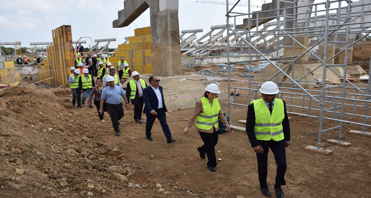 أدت وزيرة التجهيز والإسكان سارة الزعفراني الزنزري ووزير الشباب والرياضة كمال دقيش صباح اليوم الجمعة 26 ماي 2023 زيارة ميدانية إلى حظيرة الأشغال لمتابعة نسق تقدم إنجاز المشروع بمختلف مكوناته، وذلك في إطار الحرص على متابعة تقدم أشغال إعادة تهيئة الملعب الأولمبي بالمنزه واستكمالها في الآجال المتفق عليها.