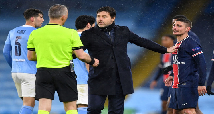 اتهم الإيطالي ماركو فيراتي اليوم الثلاثاء 04 ماي 2021 الحكم الهولندي بيورن كيوبرز الذي ادار مباراة باريس سان جرمان ومانسستر سيتي الأنقليزي لحساب إياب الدور نصف النهائي لكأس رابطة الأبطال الأوروبية وانتهت بفوز المان سيتي (2/0) وعبوره إلى نهائي المسابقة الأمجد، بتوجيه عبارات بذيئة له ولزميله ليوناردو باريداس.