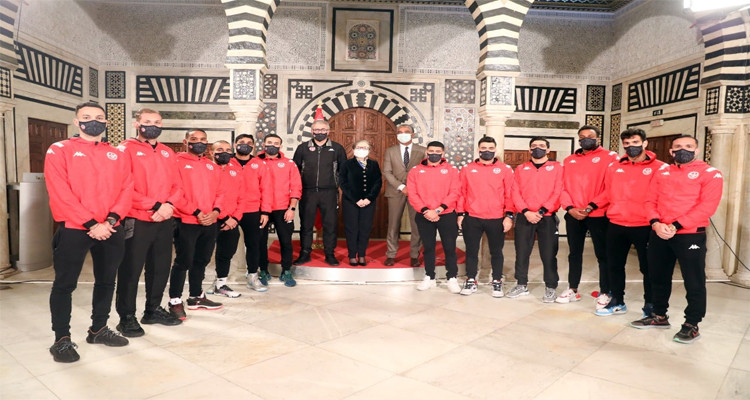 استقبلت رئيسة الحكومة نجلاء بودن رمضان ظهر اليوم الأحد 02 جانفي 2022 بقصر الحكومة بالقصبة لاعبي المنتخب الوطني لكرة القدم بحضور وزير الشباب والرياضة كمال دقيش.