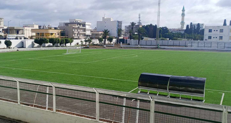 الملعب المذكور كان قد تم تجهيز أرضيته الرئيسية بالعشب الاصطناعي من الجيل الخامس من المواصفات الدولية، باعتمادات مالية تناهز 830 الف دينار ممولة من قبل كل من وزارة الرياضة والمجلس الجهوي للولاية، علاوة عن و تقوية الأسس و والهياكل الحاملة لمدارج الملعب باعتمادات مالية جملية ممولة من قبل وزارة الرياضة والبلدية والولاية، وتجميل المحيطين العامي الداخلي والخارجي للملعب وتهيئة المنصة الشرفية.